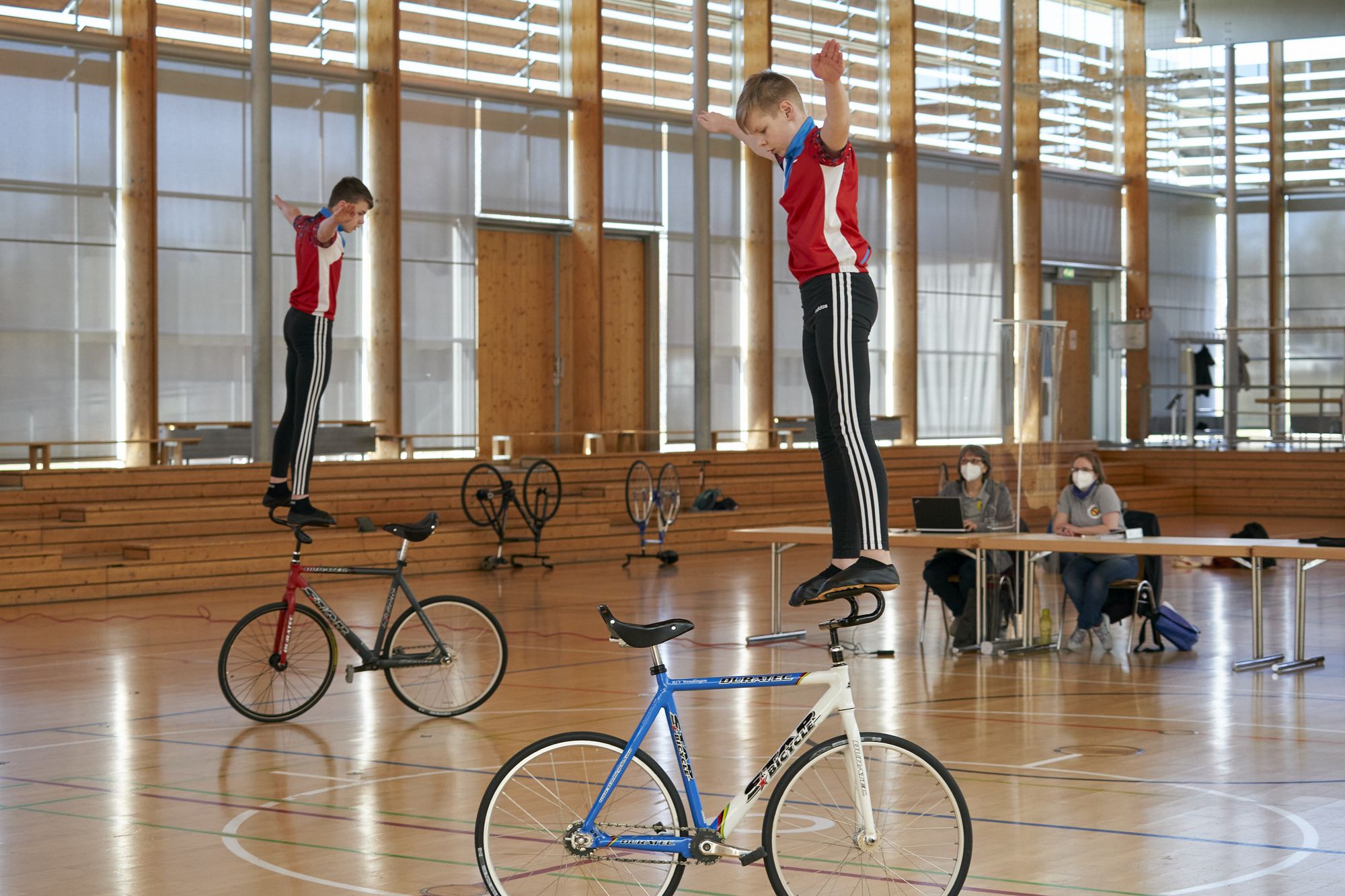 Auch im 2er Juniorinnen steht bereits fest wer Deutschland vertreten wird denn die amtierenden Europameisterinnen Anna-Sophia von Schneyder und Anika Papok (Lottstetten) liegen hier vorn, so dass sie die Möglichkeit haben ihren Titel zu verteidigen. Auf Rang 2 in der Gesamtwertung der Junior-Masters-Serie liegen Eva und Lena Streit (Orsingen), die sich erneut fürs Finale qualifiziert haben jedoch im ersten U19-Jahr noch nicht für die EM-Startberechtigt sind. Maren Buchholz und Marisa Göppert (Fischerbach) knackten im Finale die 100er-Marke mit neuer Bestleistung. Rang 4 ging an das Duo Lara Schneider und Tanja Österle (Unterweissach) dicht gefolgt von Sofia Baier und Letizia Daudey (Lottstetten) auf Platz 5. Bei den Junioren im 2er zeigten Jonas Mächtig und Simon Riedinger (Ilsfeld) im Finale ebenfalls eine neue Bestleistung mit der sie sich Platz 2 sicherten gefolgt von Gabriel und Raphael Heinz (Wendlingen) die nicht nur den Einzug ins Finale erreichten, sondern ebenfalls eine neue Bestleistung erzielten. Das Gutacher Soli-Duo Lena Moser/Mario Stevens belegt Rang 4.