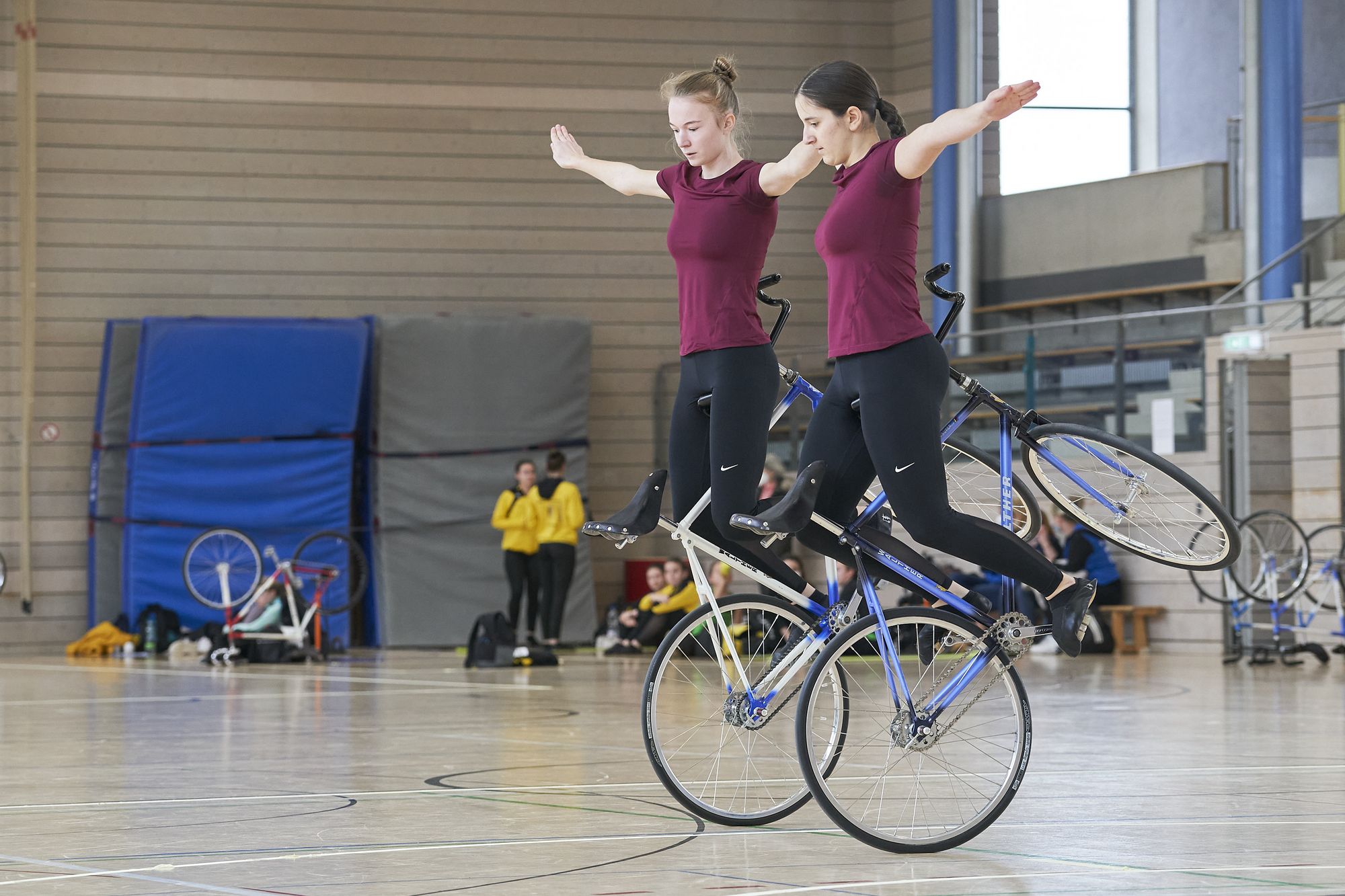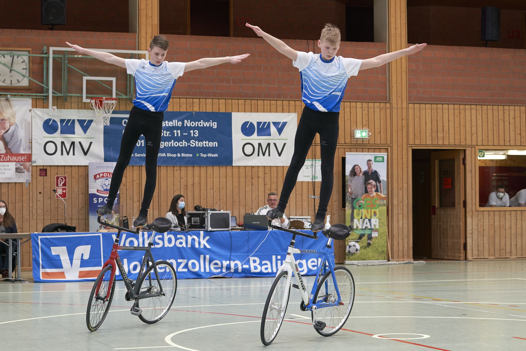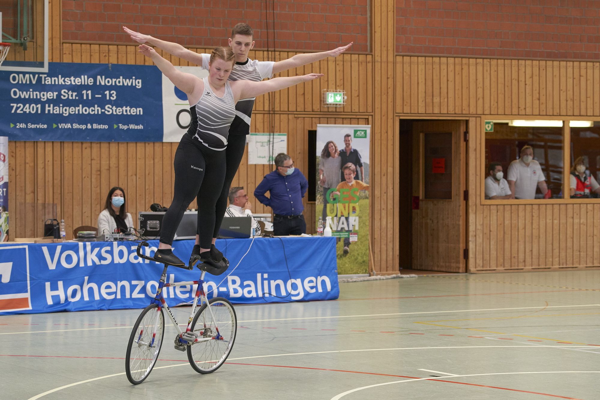 Bei den Zweier Teams konnten sich ebenfalls die Favoriten klar durchsetzen. Daniel und Alexander Stark vom TSV Bernlohe erreichten im Finale eine persönliche Bestleistung von 123,78 Punkten. Die Lokalmatadoren vom RKV Ilsfeld - Simon Riedinger und Jonas Mächtig kamen auf den zweiten Platz und erreichten ebenfalls eine persönliche Bestleistung mit 118 Punkten. Als drittes Team im Finale konnten Lena Moser und Mario Steven vom RSV Gutach/Soli eine schöne Kür präsentieren. Raphael und Gabriel Heinz vom RSV Wendlingen verpassten zwar das Finale, konnten aber in der Zwischenrunde ebenfalls die Bestleistung steigern.