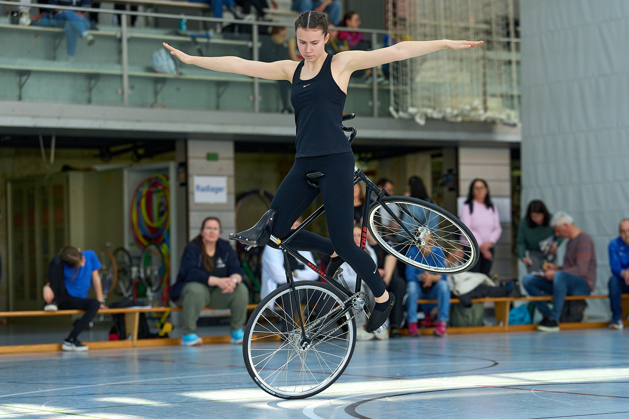 Für die Juniorinnen und Junioren war der 2.BW-Cup bereits die dritte und vorletzte Wertung in der Wettkampfserie. Im 1er Junioren ging der Tagessieg n Maximilian Keller aus Kirchdorf vor Elijah Beck (Trillfingen) und Aaron Klär (Öschelbronn). Ebenfalls drei Starts gab es im 2er Juniorinnen. Hier gewannen Enie Vetter/Andrea Eugster (Hofen/Lorch) souverän vor Mia und Maya Lomuscio (Gärtringen) sowie Rebekka und Magdalena Weiß (Herten), die erstmals Kopfstand/Handstand zeigten den sie allerdings aufgrund Unsicherheit bereits im Aufbau abbrechen mussten. Hannah Schneider (Offenburg) gewann mit deutlichem Vorsprung die Disziplin 1er Juniorinnen, Lokalmatadorin Sophia Halter (Erlenbach) folgt auf Rang 2 und Enie Vetter (Hofen) auf Platz 3. Die Plätze 4- 8 belegen Madeleine Milz (Empfingen), Fiona Merk (Bad Schussenried), May Burkhardt (Stuttgart), Noemi Mehnert (Bonlanden) und Sara Stiermann (Stuttgart).