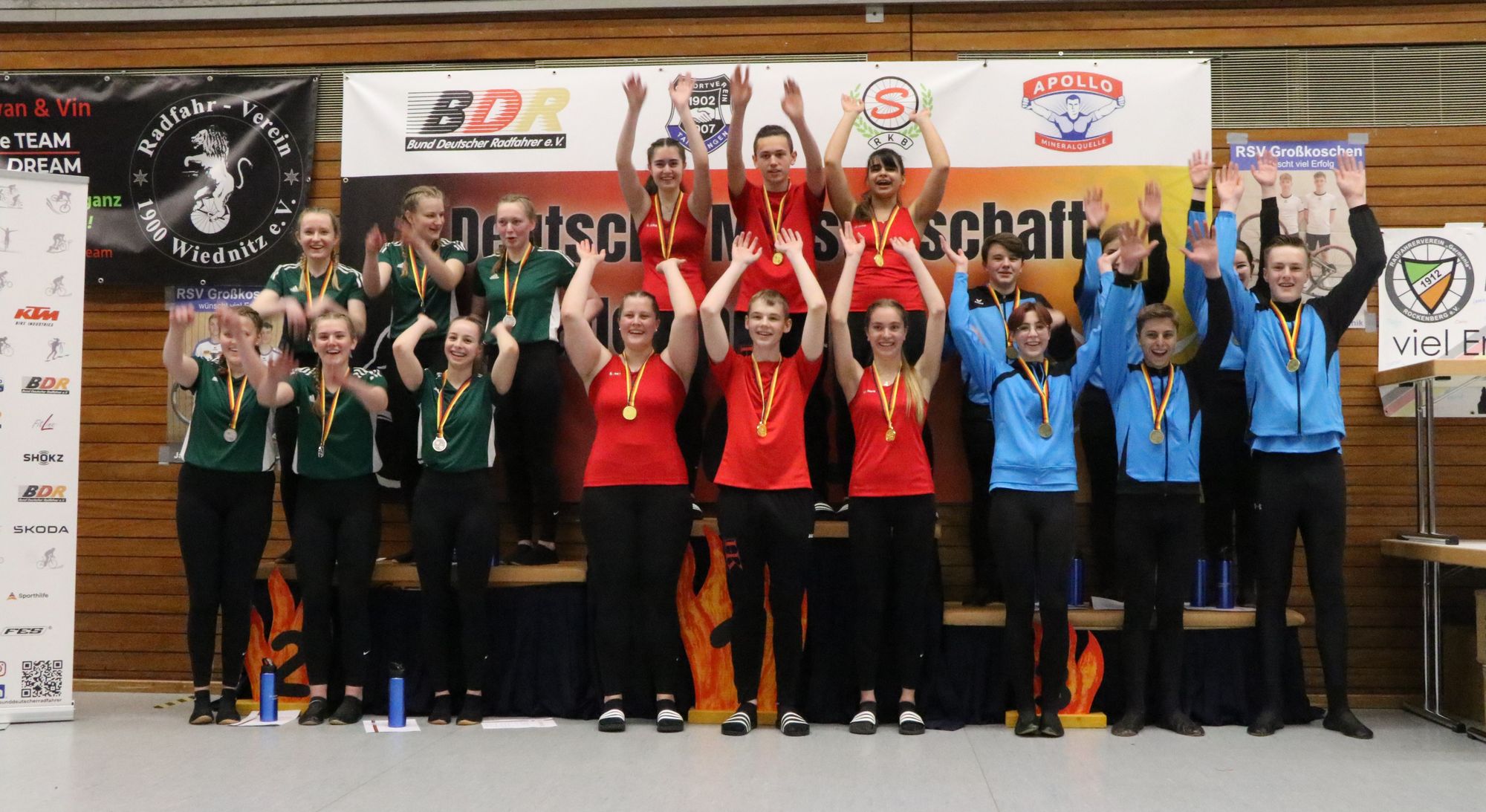 Auch bei den Mannschaftsdisziplinen konnten die Badischen Mannschaften überzeugen. Der RMSV Aach konnte mit dem Team um Jone Burow, Yannick Gaiser, Lena Andorinha, Rebecca Grote im 4er Einradsport und im 4er Kunstradsport offen sowie ergänzt mit Natalie Grote und Hannah Elsässer, Anika Meßmer im 6er Einradsport und 6er Kunstradsport den Titel gewinnen.