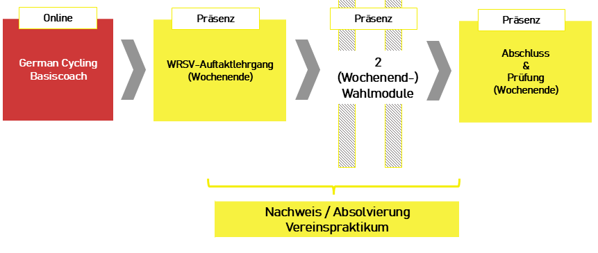 - Was kostest es: Die Preise für die gesamte Ausbildungsreihe betragen 400 € (inkl. Übernachtungen und Verpflegung an der Landessportschule und Lehrgangsunterlagen) für Mitglieder des Badischen und Württembergischen Radsportverbandes und 600 € für Mitglieder anderer Landesverbände. Jeweils zzgl. der Gebühr für die Basis Coach Ausbildung welche bei German Cycling zu belegen ist.
