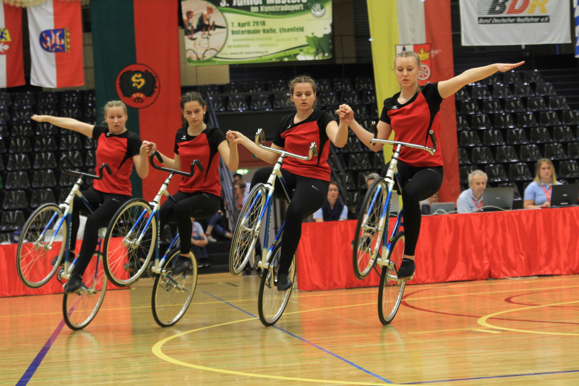 Sabrina Bürßner, Alina Bötzer, Franziska Bötzer und Stefanie Müller vom RMSV Aach vertreten Deutschland im 4er Kunstrad bei der U19 EM in der Schweiz